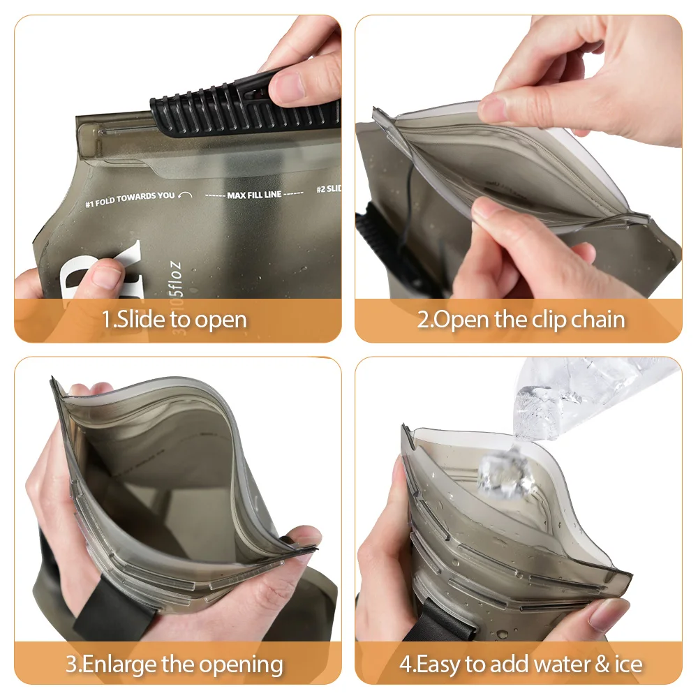 -Portable soft flasks compress when you drink water, ltting you know how much alcohol you have left. Very suitable for marathons, running, hiking,cycling, etc